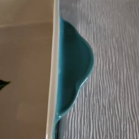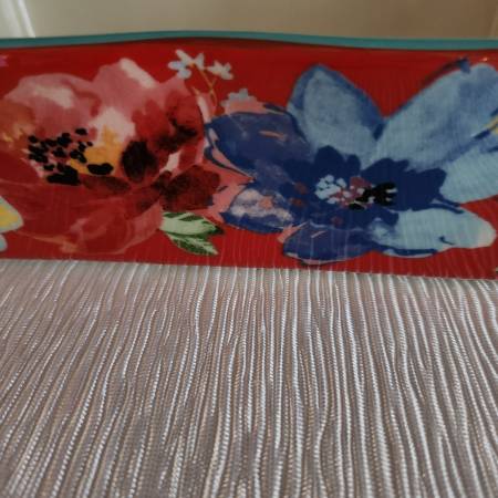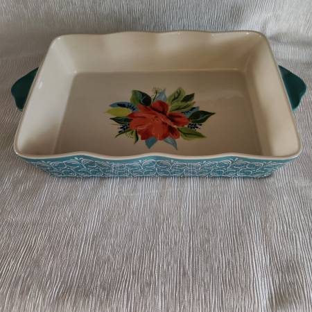 Brand New, never used. Beautiful set of 2 ceramic casserole dishes in the discontiued pattern "Spring Bouquet". The blue pattern one is approx 9" x 13". The red pattern one is approx 8" x 12". Oven safe to 450 degrees. Microwave and dishwasher safe. Looks beautiful from the oven to the table.