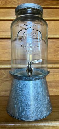 Pottery Barn Drink Dispenser with Stand. Glass dispesnser. Metal base. Approx. 19 1/4" x 9". Used once --Like New. Smoke free home. If interested, please contact me; enter posting title into subject...
