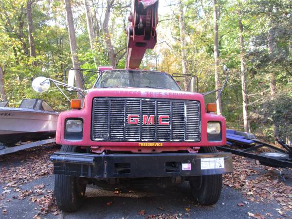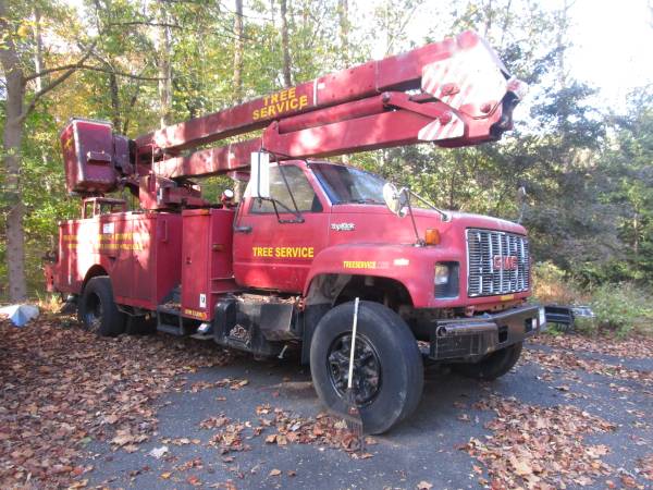1992 GMC Top Kick 50 ft. Utility bucket truck. 68,000 orig. miles. 33,000 # GVW. 6 cyl. Cat w/ 5 sp. Allisaon auto. Retired Con Ed truck from NYC. Rebuilt Telex Utility boom system. Hydraulic system works. small hosew leak and one air switch doesn't work.
