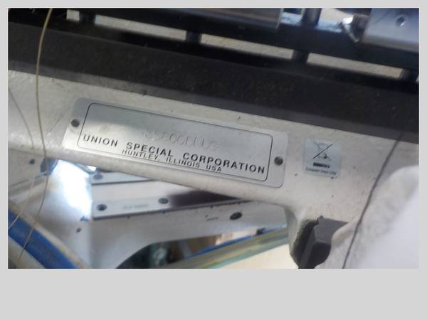 Union Special 35-800 DNU9 complete with 220 stand pedestal, air trimmer and needle positioner in excellent sewing condition