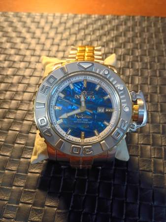 These are the last incredible watches from my collection...these are Invicta's finest, a sub aqua reserve and the largest Sea Hunter in classic metal bracelet and gorgeous dial. The Sea Hunter is an automatic, never needs winding,..,,wear it and it winds!!! This is a huge dial 56 mm and very outstanding. The second is the infamous dive model of the sub aqua noma. This is all stainless steel and it weighs one full pound!!.. These are not for the feint of heart and they will make a statement like no other. I am offering each one for sale for a CHRISTMAS SPECIAL PRICE REDUCTION OF 120 Dollars each or the best offer you can seriously do to obtain either both of these or just one. They need a new home as I am now retired and I have whittled my collection down. If you buy both I will include a third watch, another Invicta, for free. I am in Easton and am very eager to find a new home for these. The picture added is the free watch you will get if you purchase the other two for a reasonable offer.