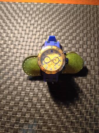 Beautiful blue strap and gold dial ..perfect for any dress occasion. I will also include and Invicta white dive case, a true collectors item. This dive case is perfect for storing and transporting your watches.