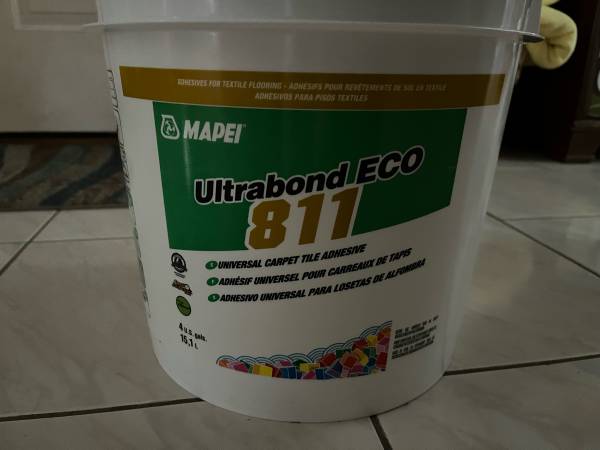 Brand new 4 gallon bucket of Mapei Ultrabond ECO 811 Universal Carpet Tile Adhesive. Has been stored indoors at 70 degrees and out of the sun.
