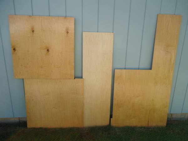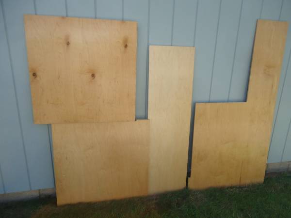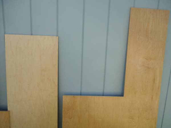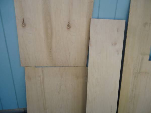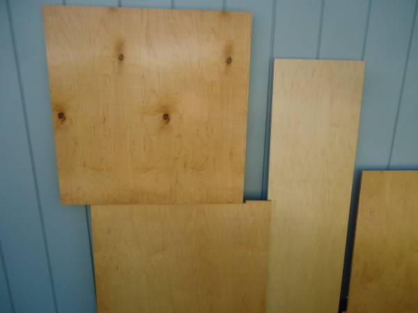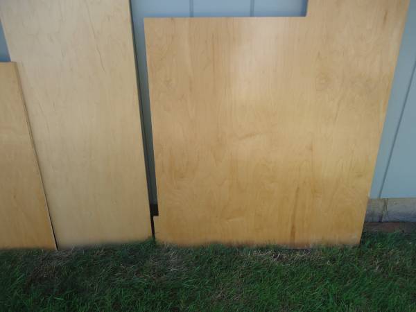 1/2" MAPLE PLYWOOD - CABINET GRADE - PREFINISHED ON ONE SIDE (THE FINISH IS VERY DURABLE) - THE OPPOSITE SIDE IS PLAIN UNFINISHED MAPLE VENEER. I TOOK PHOTOS OF BOTH SIDES TO SHOW THE GRAIN PATTERNS AND COLOR SO LOOK AT ALL OF THE PHOTOS. DIMENSIONS 1) LEFT TOP - 31 1/2" X 31 1/2" 2) LEFT BOTTOM - 30" X 31 1/2" 3) 55" X 16" 4) 65" LONG OVERALL X 33 1/2 WIDE OVERALL, THE BOTTOM SECTION IS 36" HIGH AND THE TOP LEG IS 29 1/2" X 12 3/4". ALL OF THE PIECES ARE CLEAN, FLAT, STRAIGHT AND 100% USABLE. $50 - LEAVE A CONTACT NUMBER IF INTERESTED.