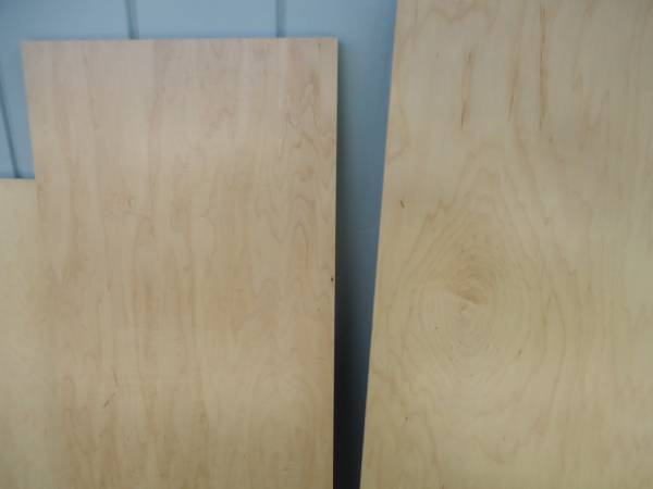 CABINET GRADE PREFINISHED 3/4" MAPLE PLYWOOD. THE FINISH IS EXTREMELY DURABLE AND WILL LAST A LONG TIME.THE DIMENSIONS LEFT TO RIGHT 1) 48" X 24 1/2" X 3/4" 2) 56 1/2" X 17" X 3/4" 3) 59" X 22 3/4" X 3/4' . ALL THE PIECES ARE CLEAN, STRAIGHT, AND FLAT. I TOOK PHOTOS OF BOTH SIDES TO SHOW THE GRAIN AND COLOR OF EACH SIDE SO LOOK AT ALL OF THE PHOTOS. $60 FOR ALL THREE PIECES. LEAVE A CONTACT NUMBER IF INTERESTED.