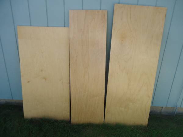 CABINET GRADE PREFINISHED 3/4" MAPLE PLYWOOD. THE FINISH IS EXTREMELY DURABLE AND WILL LAST A LONG TIME.THE DIMENSIONS LEFT TO RIGHT 1) 48" X 24 1/2" X 3/4" 2) 56 1/2" X 17" X 3/4" 3) 59" X 22 3/4" X 3/4' . ALL THE PIECES ARE CLEAN, STRAIGHT, AND FLAT. I TOOK PHOTOS OF BOTH SIDES TO SHOW THE GRAIN AND COLOR OF EACH SIDE SO LOOK AT ALL OF THE PHOTOS. $60 FOR ALL THREE PIECES. LEAVE A CONTACT NUMBER IF INTERESTED.