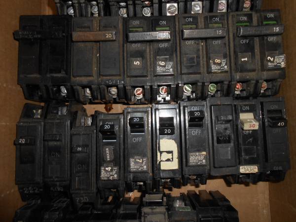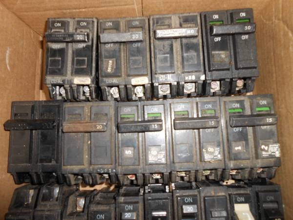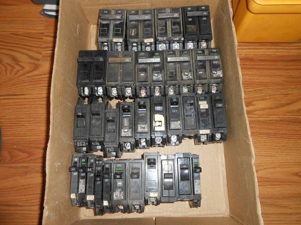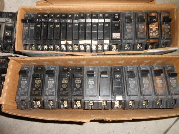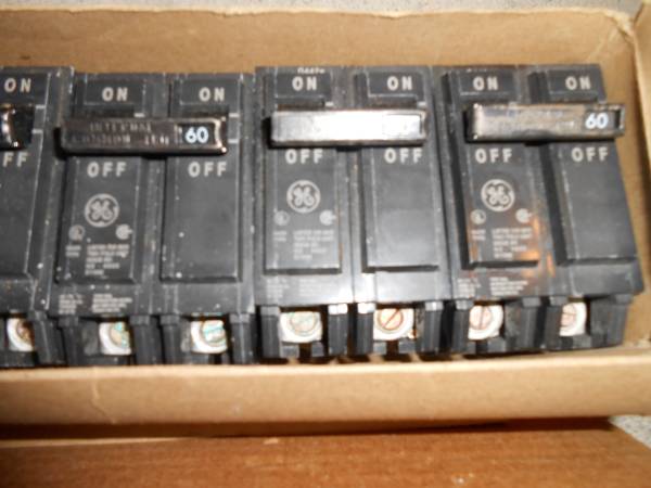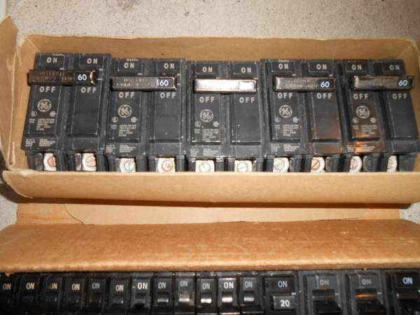 g.e. circuit breakers-2 pole -60-50-40- -2 pole 30-20-15---5.00 each--single pole-40-30--2.00--20-15-2.00 each-some used some not