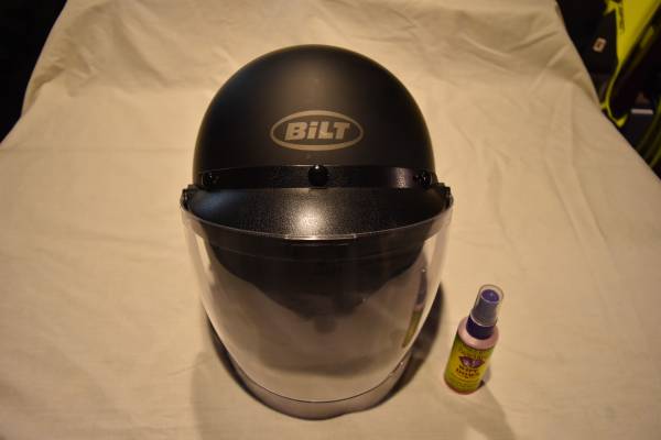 Open face 3/4 helmet in a high quality finish with removable peak Matte Black Includes Face Shield and a bottle of Wizards Wipe down
