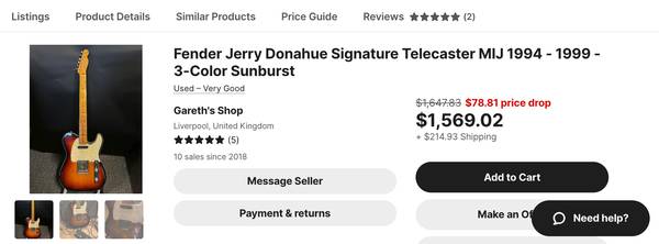 Fender Jerry Donohue telecaster Made in Japan 50th anniversary telecaster V-shaped neck plays easy with hard shell case https://www.youtube.com/watch?v=HMiFfC2qgtA...