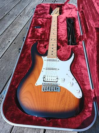 For sale is an excellent condition Ibanez AT100CL-SB Prestige Andy Timmons signature electric guitar with original Prestige hardshell case. Guitar is in excellent condition with and plays and sounds great. It has very minor play wear on the body. The volume pot was moved to the center and the tone knobs were disconnected. The pots are still there and can be reconnected. Pro set up with low action and .009 Ernie Ball strings. Includes trem arm. Local sale preferred but willing to ship at buyer's expense.