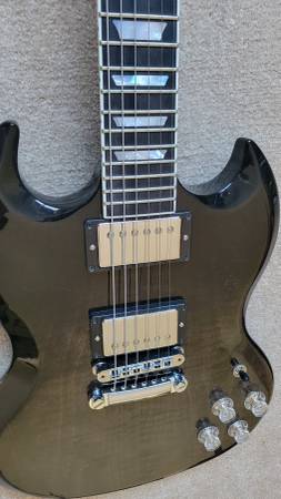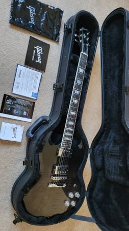 Very close to mint Beautiful Gibson SG Modern with paperwork and Original hardshell case. Has push/pulls on Volume controls for coul tapping Humbuckers. Guitar is balanced strapped on. Plays great with low action. No issues. No wear. Located in Scranton PA area.