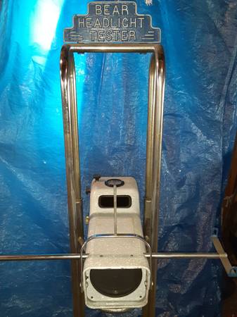 1950s Bear Headlight Tester model 560 with operating instructions. Great condition, but for pitted chrome uprights.