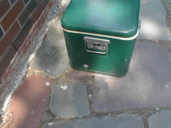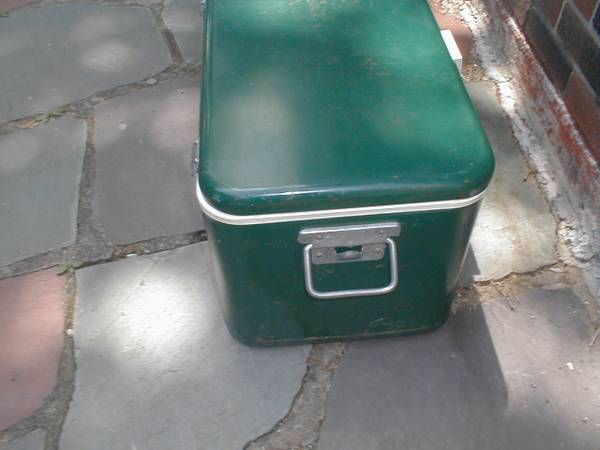 Vintage Metal THERMOS Cooler Color Green Size: 21x13x11" depth Nice clean condition. Price: $45 cash ph# six one zero seven three nine four seven six five or email me. No texting I only meet people...