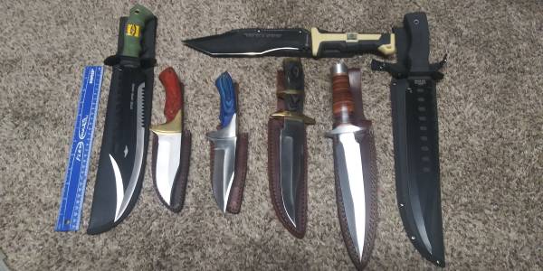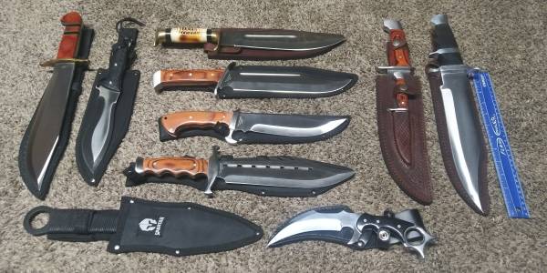 This collection consists of mainly large heavy duty knives for hunting and/or wilderness survival. There are a few smaller blades and folding knives as shown in the pictures as well. Never used except for collecting purposes these knives are in great condition and ready for hunting, chopping, etc. Some brands include Timber Wolf, Timber Rattler, Ridge Runner, Black Legion, Gil Hibben and more. Serious inquiries only. If you would like to view these in person, let me know. Some of the blades will need to be polished if you want them to look pretty and some do show minor scuffs from sheathing but otherwise are beautiful. Any questions let me know. Pick-up will be at my location in East Allentown. I prefer CashApp or Venmo but will accept cash as well. Due to overwhelming scams and fake text messages, I am only communicating through messaging or email. Please send me a personalized email and I will be happy to provide you with a phone number after I confirm you are a serious and real person.