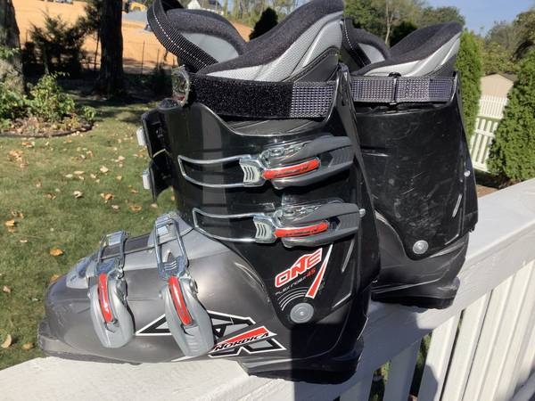 The Nordica One Men's ski boots in size Mondopoint 26.5 are designed for alpine/downhill skiing. The sleek black boots offer a comfortable fit and high performance, making them ideal for competitive skiers looking for precision and control on the slopes. With the reputable Nordica brand name, these ski boots are sure to provide a reliable and thrilling experience for any skiing enthusiast.