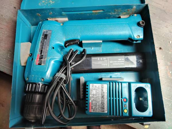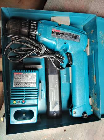 Makita cordless driver drill #6095D. This drill has been tested and is in working order. It comes with two batteries and a charger. The batteries and the charger are also in working order. It's also...