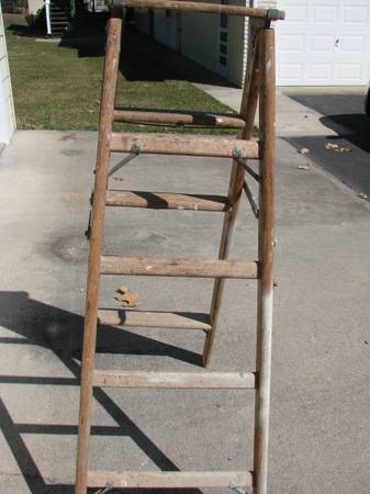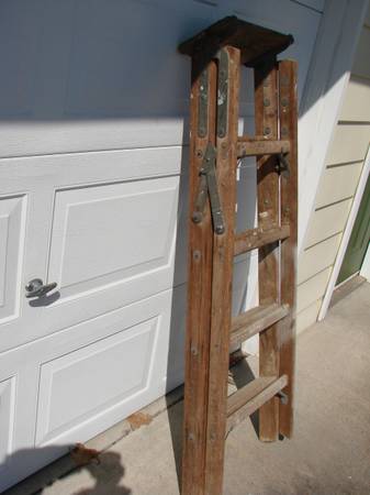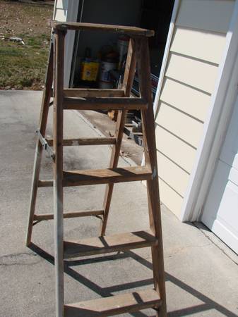 5’ heavy duty wooden step ladder This is a used very sturdy wooden step ladder. It is in very good condition. Asking $35 open to offers.