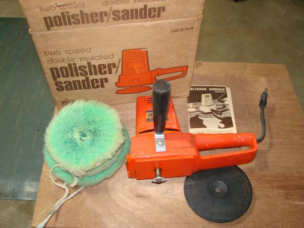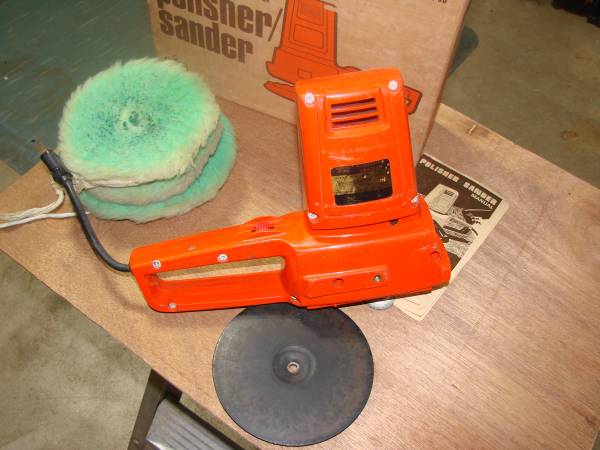 This is a used but in good condition (that works great) 2 speed AC powered polisher/sander. High speed is 2,500 rpms and low speed is 2,000 rpms. Has a rubber pad to put a 6” sanding disc on or a polishing buffer bonnet. Comes in its origin box with 3 used buffing bonnets, side handle and owner manual. Asking $15 open to offers