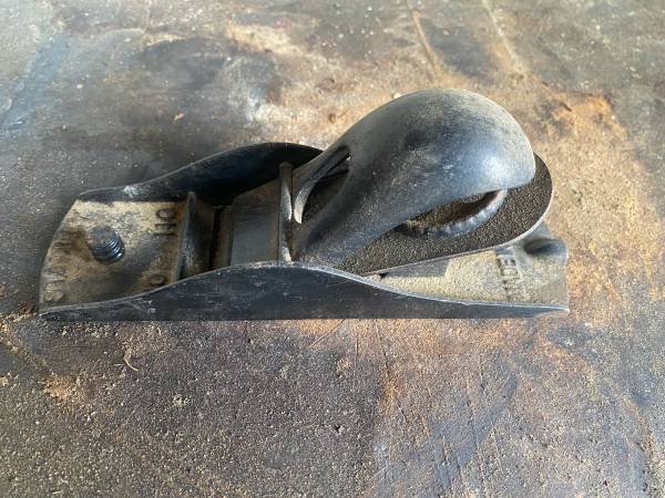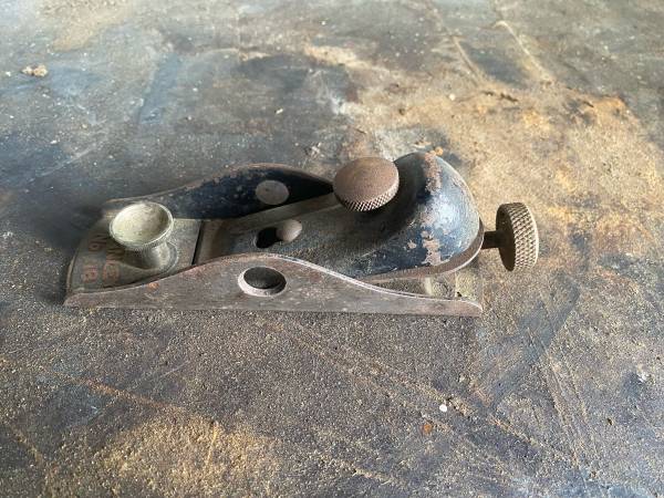 Vintage low-angle plane, likely for light smoothing or trimming tasks. Features a red-painted cap and gray cast body—an eye-catching piece for display or restoration.