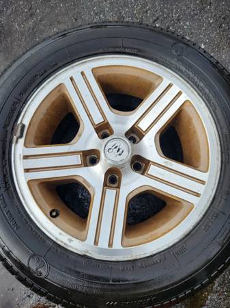 Second pictured set were originally gold and have been lightly painted over in black, both fronts and rears set with older good tires, can easliy be repainted back to gold or silver, tires have deep tread hold air $500
